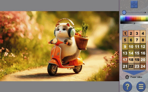 Продолжение коллекции анимированных раскрасок Video Art. Игра превращает классическую раскраску по номерам в динамичное и завораживающее занятие. Вместо того чтобы раскрашивать неподвижные изображения, вы вдыхаете жизнь в короткие видеоролики, применяя яркие оттенки к каждому кадру. Вы можете остановить мгновение, нажав на кнопку Pause video. По мере того как вы подбираете цвета к номерам, анимация постепенно оживает, открывая потрясающие сцены, которые меняются в зависимости от вашего творчества. От безмятежных пейзажей до причудливых моментов - каждый ролик становится живым холстом. Наблюдайте за тем, как ваши мазки оживляют экран и превращают простые числа в кинематографическую красоту. Дайте волю своему воображению и создавайте динамичные шедевры - кадр за кадром, цвет за цветом, момент за моментом.